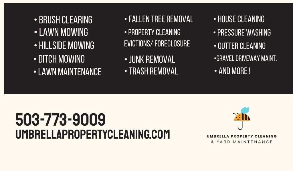 We’re here to help with your property cleaning needs, including: Brush clearing, Hillside and ditch mowing, clearing fallen trees and lawn debris, and Junk and Trash removal.